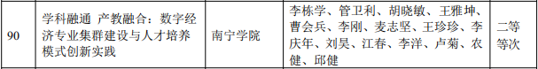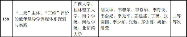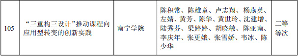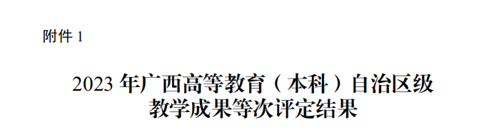 2024年1月22日,自治区教育厅下发《自治区教育厅关于公布2023年广西高等教育自治区级教学成果等次评定结果的通知》(桂教高教〔2024〕4号),南宁学院作为第一完成单位,获得2023 年广西高等教育(本科)自治区级教学成果等次二等等次 4项;作为参与完成单位获得二等等次1项。